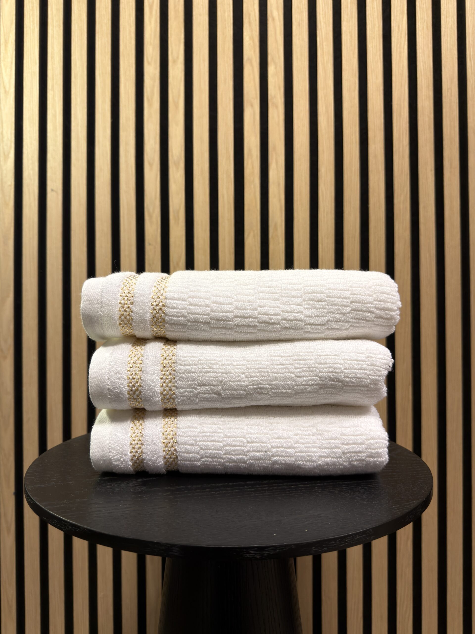 Katoenen Handdoek – Wit met Gouden Streep