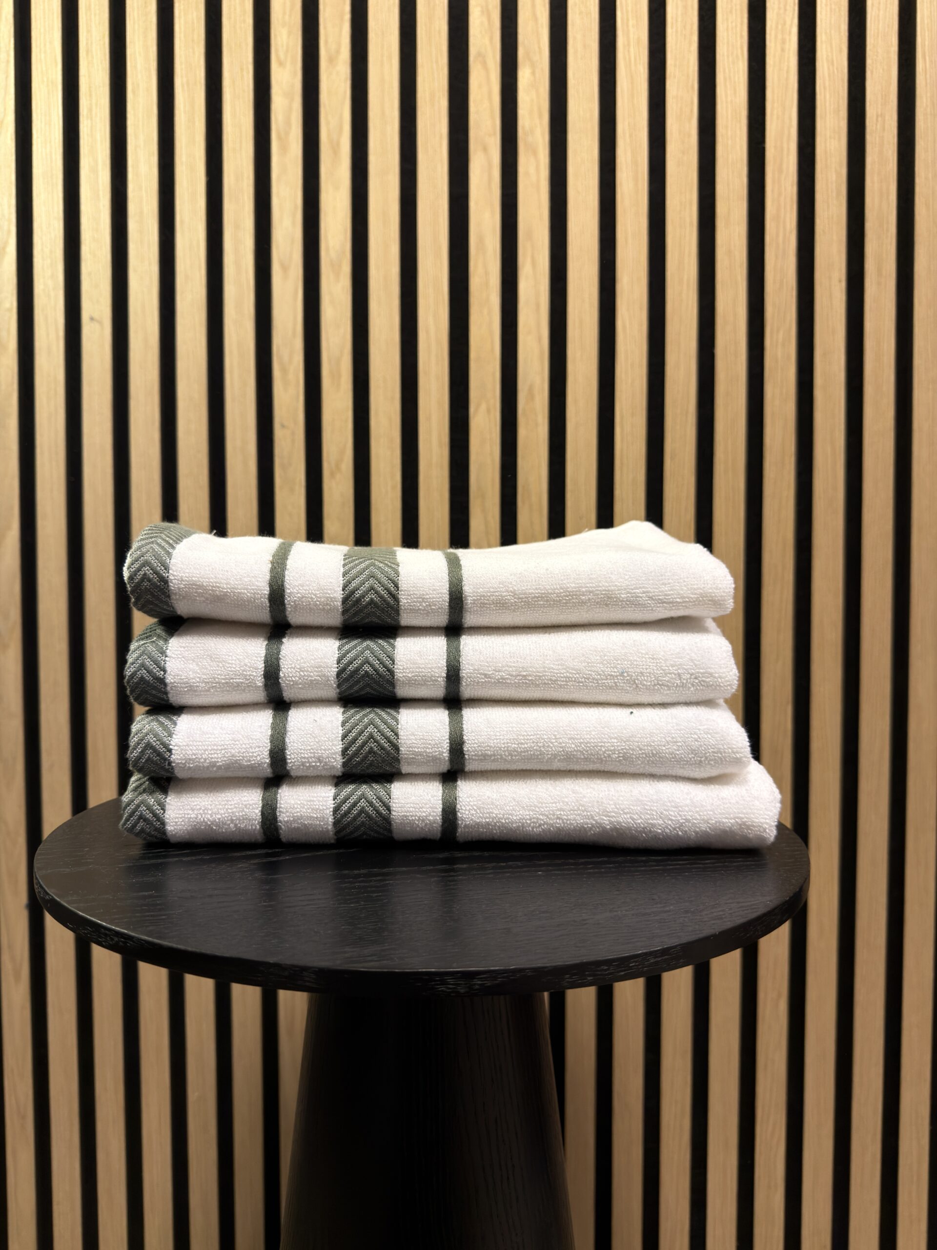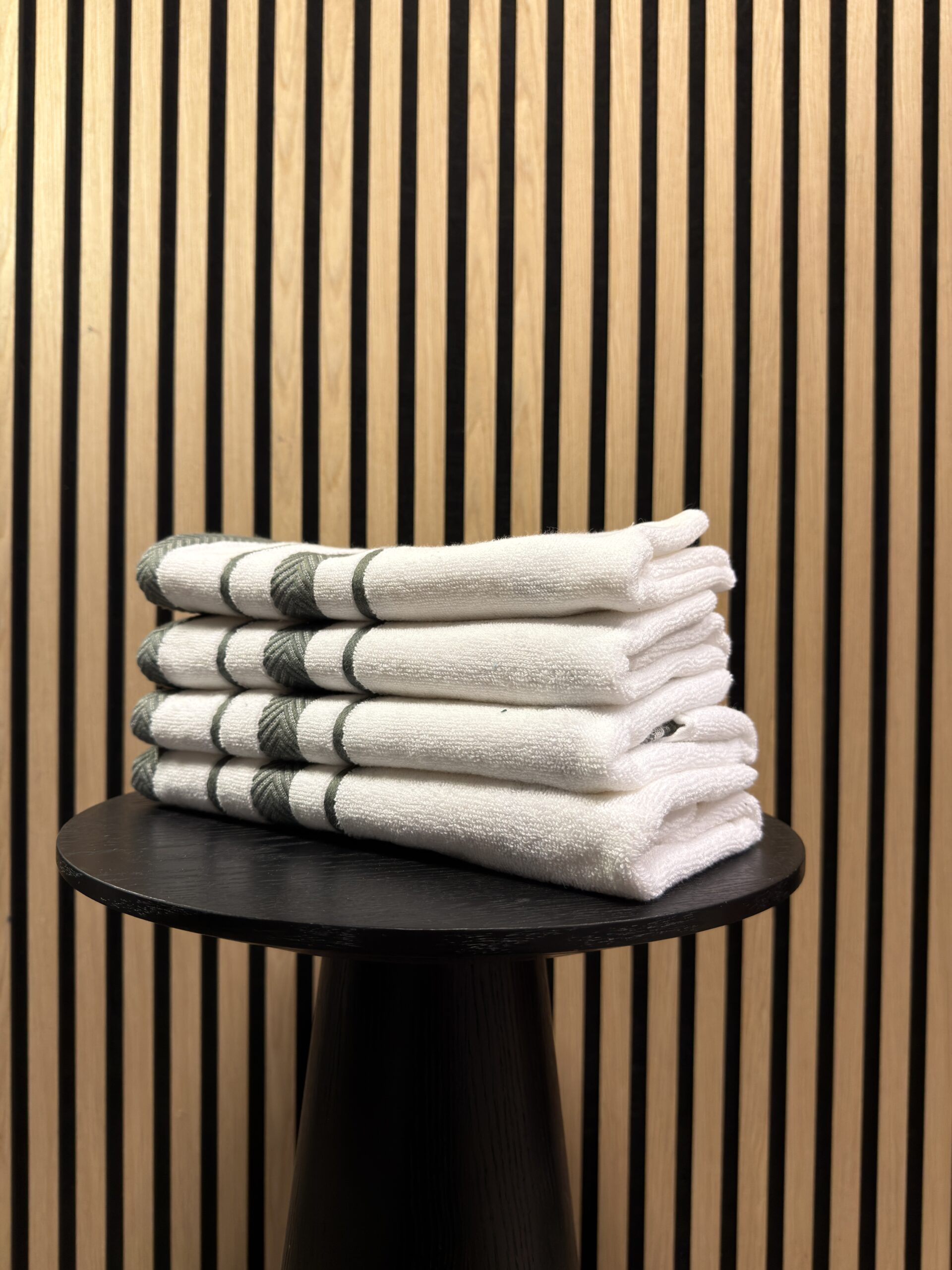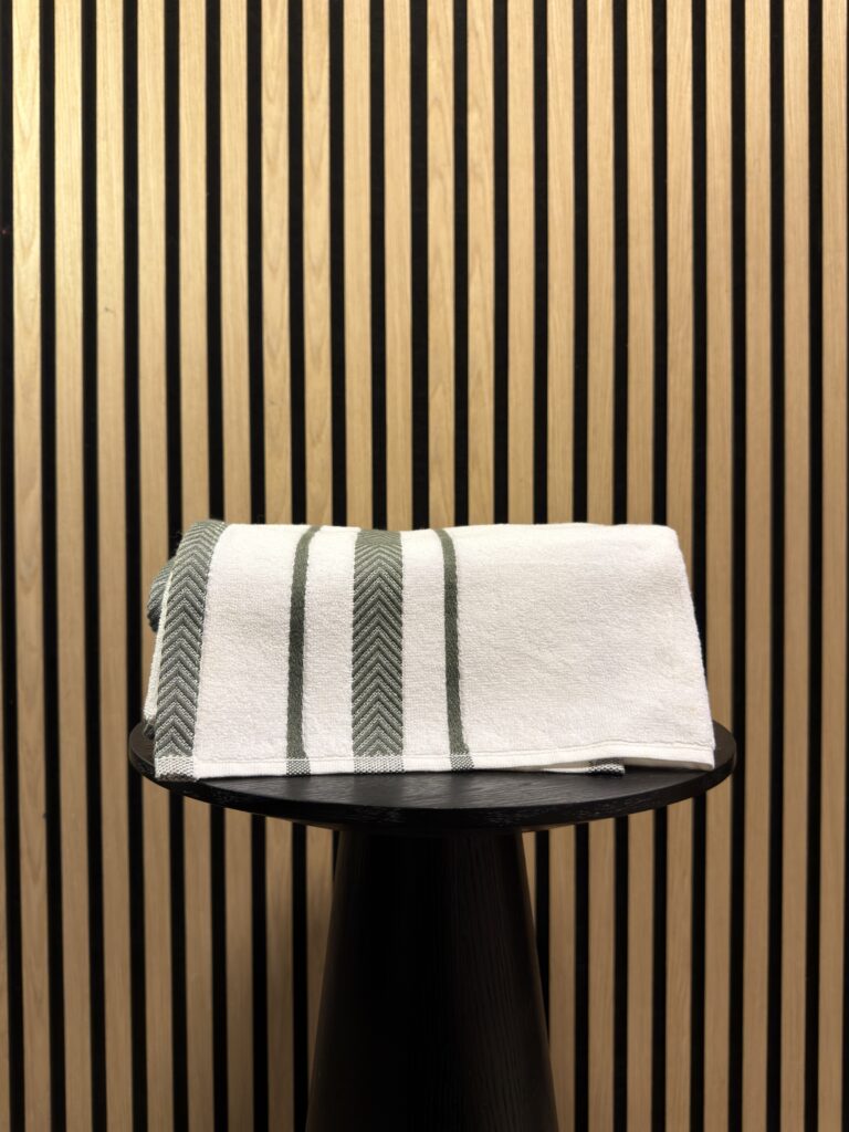 Katoenen Handdoek – Wit met Groene Streep